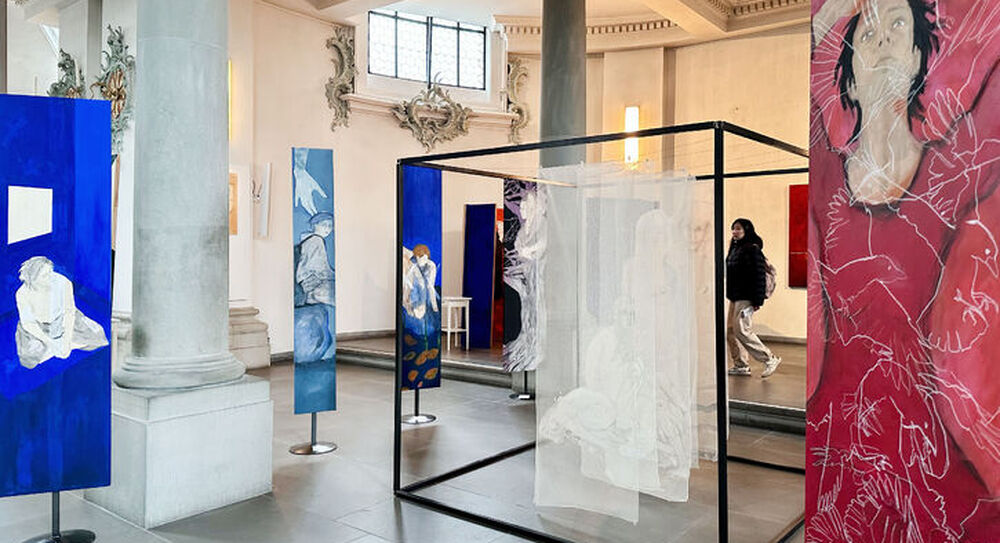 Im Westchor der Kathedrale sind in der Fastenzeit 2026 Bilder von Brigitte Messmer zu sehen. Foto: Sebastian Schneider