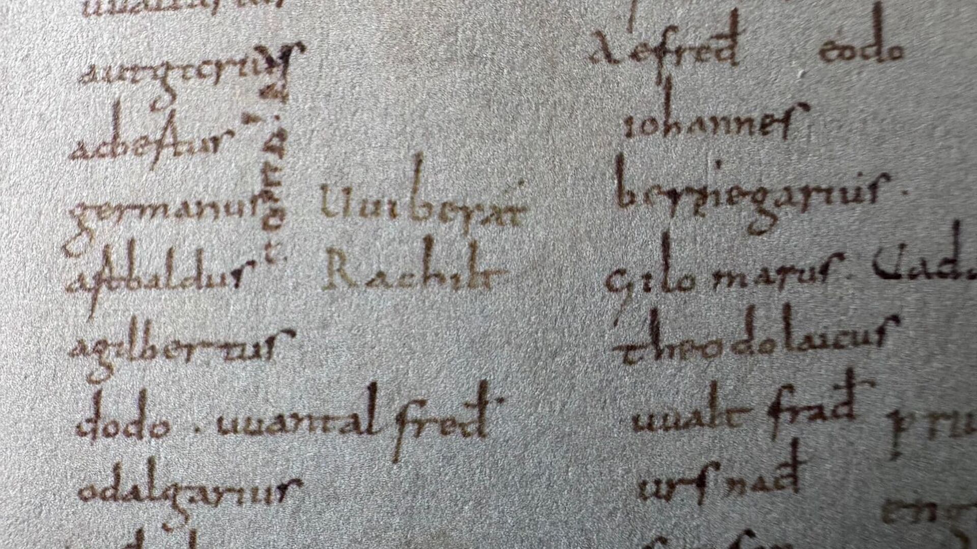 Unter den 38.000 Namen stechen «Vviberat» und «Rachilt» besonders hervor: Sie stehen in einem frei gebliebenen Raum zwischen Spalten mit den Namen der Mönche von Luxeuil. Wiborada, die laut Peter Erhart von ihrem Bruder Hitto das Lesen und Schreiben gelernt hatte, schrieb sich wohl ganz bewusst in die Nähe dieser Mönche, die eine enge Beziehung zu St. Gallen pflegten.