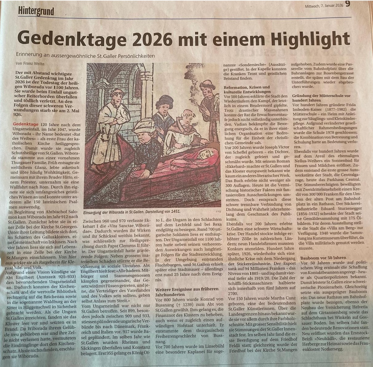 07.01.2026, St.Galler Nachrichten, Gedenktage 2026 mit einem Highlight